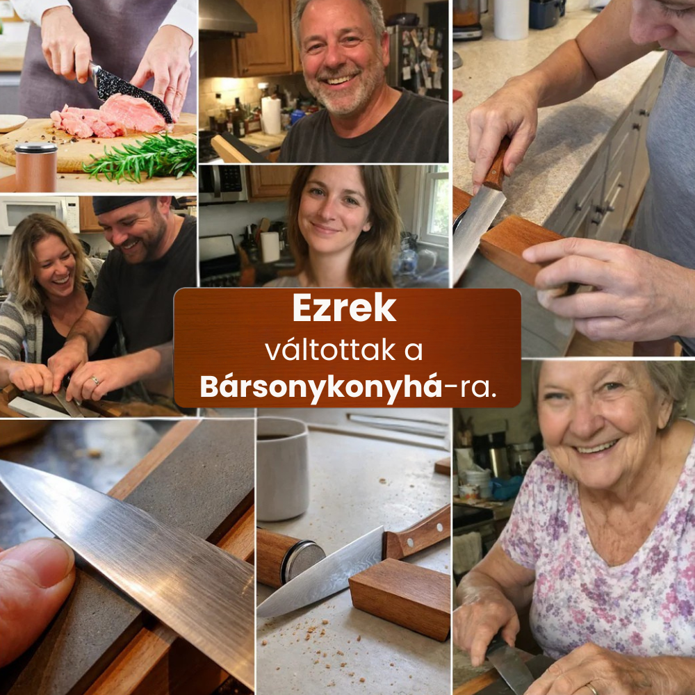A Bársonykonyha késélező minőségi anyagokból készült, stabil és hosszú távra tervezett. Nem egyszer használatos megoldás, hanem éveken át számíthatsz rá!